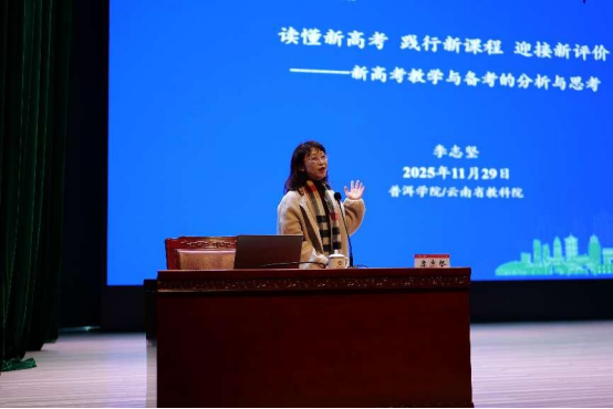 开班仪式后,昆明市教育科学研究院正高级教师李志坚围绕《读懂新高考 践行新课程 迎接新评价》作专题报告,系统阐释了新高考的政策内涵、课程实施路径与评价改革方向,为参训教师构建了清晰的教学改进框架。